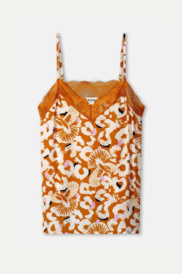 This orange top is made of beautiful woven viscose quality with a sheen. The camisole has adjustable shoulder straps.
